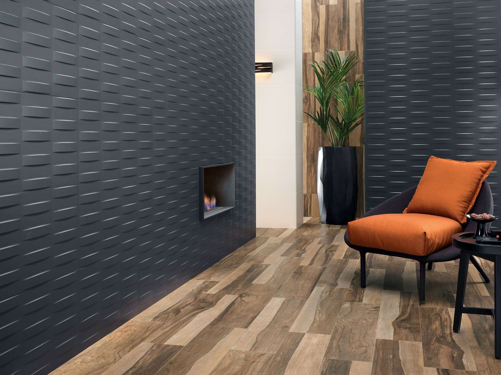 - Les factures de matériaux naturels: pierre, bois, brique - toujours hors compétition. N'oubliez pas cela et les fabricants de carreaux de céramique. Le revêtement, stylisé comme une planche de parquet, est aussi bien au sol qu'au mur. Carreau de brique il est possible de revêtir toutes les surfaces du sol au plafond, simulant ainsi la texture de la maçonnerie.