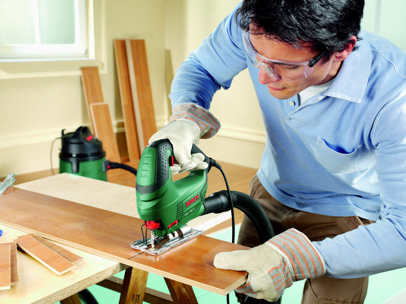 - Ils ont coupé le stratifié avec une scie sauteuse électrique, et pour ne pas perturber la couche décorative, faites-le en biais. Les petits morceaux ne sont pas jetés, mais coupés en petites bandes, qui sont ensuite installées comme entretoises de montage temporaires.