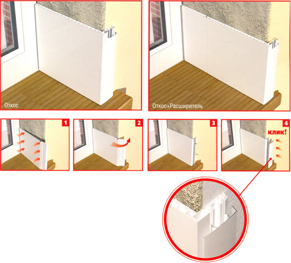 Il remplit non seulement la fonction de guide, mais donne également la force de la structure. Cela ne permettra pas au plastique de "marcher" sur la pente. - Afin de ne pas passer beaucoup de temps, vous pouvez appliquer de larges panneaux en plastique. Parfois, la largeur de ces panneaux peut correspondre à la largeur de la pente.