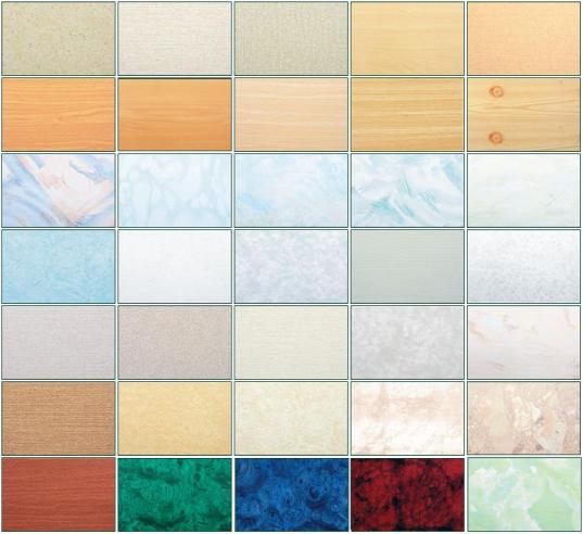 - Les panneaux en plastique peuvent être de différentes couleurs et nuances. Ils se retrouvent également en miroir et mat, ont un aspect texturé et une surface laminée.