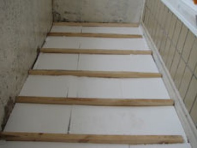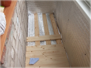 Attention: Dans de nombreuses sources Internet, lors de l'installation sur une surface de balcon, il est d'abord proposé de construire une caisse, puis seulement de mettre du matériau isolant entre les caisses. Ce mode de réalisation n'est pas correct, car la chaleur à la jonction des barres avec le plancher est rapidement perdue en raison de la conductivité thermique élevée des produits en bois. Le sol perdra rapidement de la chaleur et tout le travail effectué sera vain.
