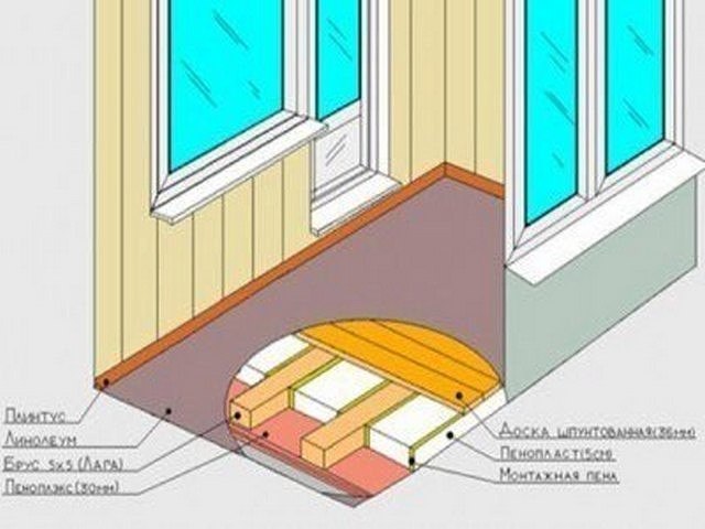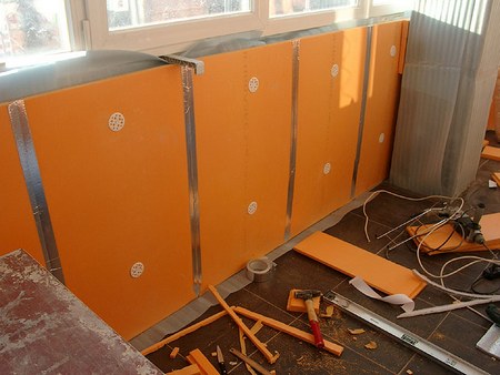 Ici, l'isolation n'est pas toujours requise, car le mur principal absorbe en partie la chaleur de la maison, surtout si le reste du balcon était bien isolé et que les fenêtres étaient vitrées auparavant. S'il y a toujours un besoin d'isolation, procédez de la même manière que pour le traitement des murs de balcon.