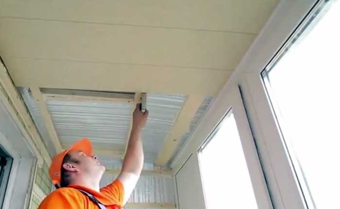 L'espace à l'intérieur de la surface du balcon est le plus souvent collé avec des panneaux en chlorure de polyvinyle. Comment travailler avec eux correctement peut être trouvé dans cet article: - "Comment fixer correctement les panneaux en PVC au plafond ou au mur."
