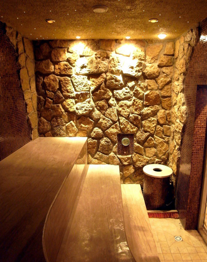Pointe. Si vous souhaitez utiliser du plâtre ordinaire ou décoratif dans la décoration du bain, il est préférable de l'utiliser dans le couloir ou dans la salle de relaxation.