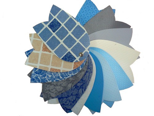 Parmi l'assortiment de revêtements PVC pour piscines, que vous voyez sur la photo ci-dessus, il existe des options lisses, ainsi que des films avec une surface antidérapante. - Le film ondulé est utilisé pour faire face aux marches des escaliers menant à l'eau, ainsi que pour couvrir le fond dans les plus petites zones de la piscine. Soit dit en passant, cette finition est fortement recommandée pour les piscines extérieures, car le PVC est meilleur que les carreaux, tolère les températures extrêmes.