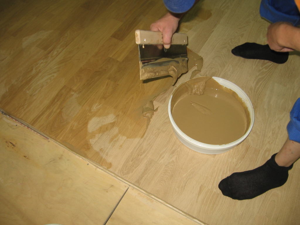 - Dans le cas où des défauts, des rugosités, des fissures sont encore visibles sur la surface du panneau, vous pouvez le recouvrir d'une double couche de mastic (voir Mastic à faire soi-même sur le plancher en bois par étapes), et le résultat final, soigneusement poncé.