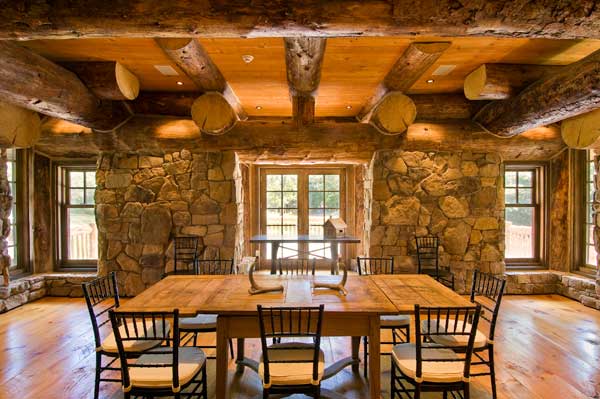 Pierre dans la décoration d'une maison en bois