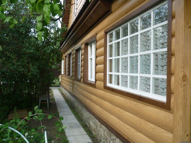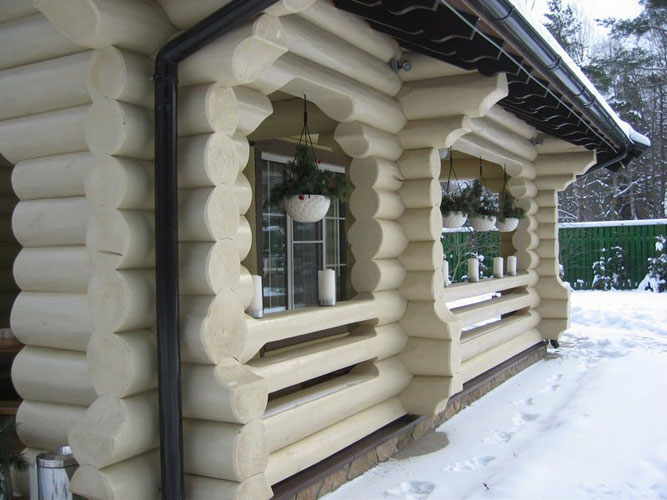 - De manière aussi simple, même la finition des anciennes cabanes en rondins peut être effectuée, ce qui après la coloration ne sera pas pire que sur la photo ci-dessous. Il est également important que le prix d'une telle finition soit le plus bas.