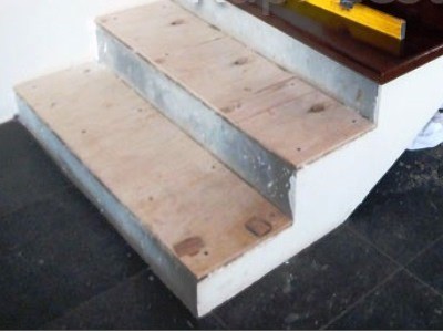 Pointe.Si l'écart concerne plus de 4 cm, il est recommandé d'utiliser du contreplaqué pour réaliser le coffrage et les marches sont remplies.