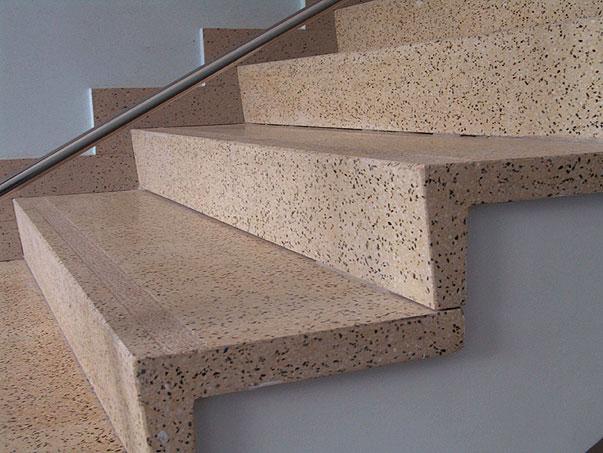 Les escaliers de revêtement pour le béton peuvent être fabriqués avec des pierres à grains fins comme le marbre, le granit, le grès, le basalte. Ils sont le plus souvent utilisés dans un intérieur classique.