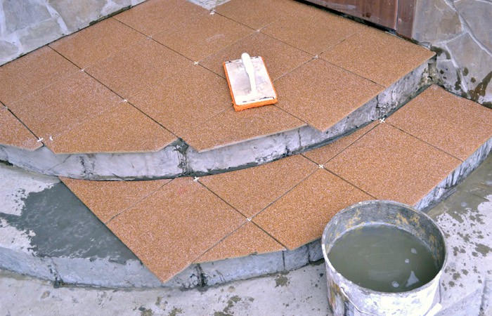 - Seulement dans ce cas, la couche de la solution ne doit pas être trop grande pour qu'à l'avenir le carrelage des marches du porche soit uniforme.