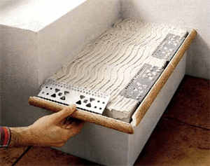 - Appliquer la solution sur le carreau à l'aide d'une spatule à peigne. Mettez et appuyez tout en effectuant des mouvements légèrement rotatifs.