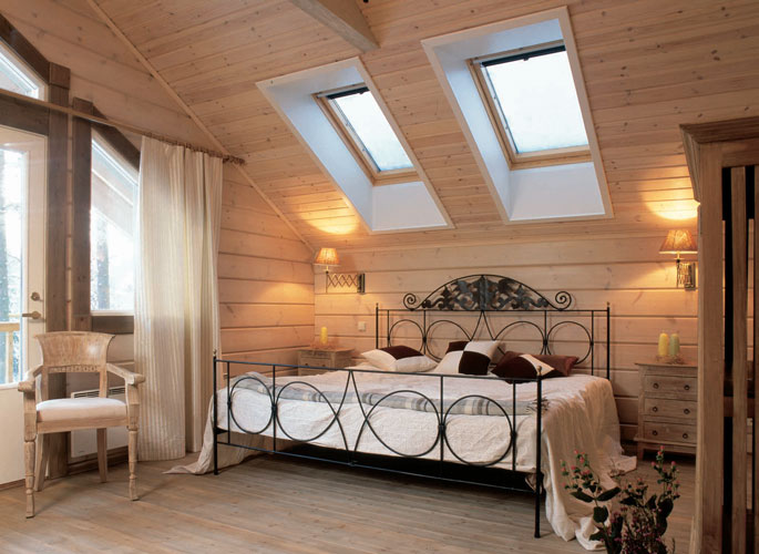 Cela contribue à un bon éclairage naturel du grenier. - Toutes les chambres mansardées n'ont pas assez de fenêtres. Si les fenêtres ne sont pas prévues dans les pentes du toit, et qu'il n'y a que de petites fenêtres sur les murs du fronton, en termes d'éclairage, vous devez vous fier davantage aux dispositifs d'éclairage.