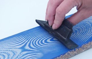 - Une couche de peinture plus foncée est appliquée, créant des boucles qui imiteront les fibres de bois, et le savon liquide est lavé.