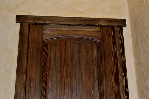 Avant de teindre avec une teinture, la porte est humidifiée, donc le bois augmente son adhérence, et le revêtement est mieux absorbé et se pose uniformément.
