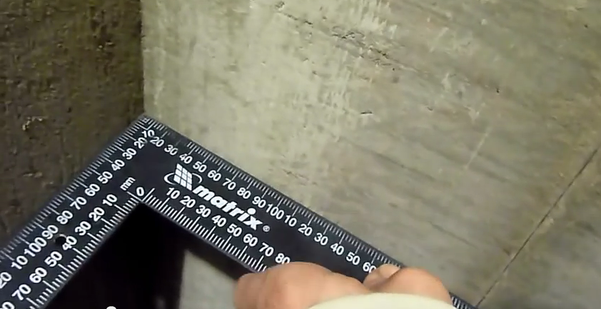- Un apprêt est appliqué du coin au mur, puis jointoyé par la règle. Ensuite, nous distinguons le coin et sa surface en grattant la râpe du maçon avec des clous.