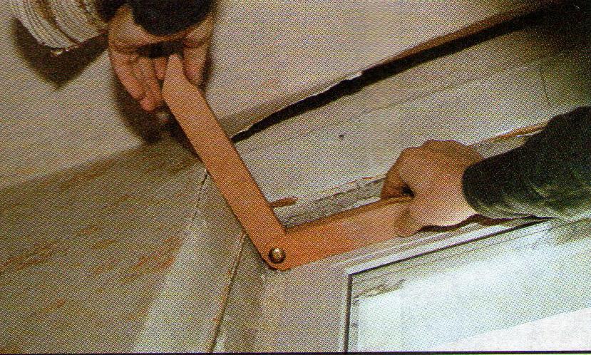 Le dispositif pour créer le même angle lors du plâtrage des pentes était appelé petit. En fait, il s'agit d'un bloc avec un trou, généralement en contreplaqué épais, où un rail mince est inséré sous forme assemblée - la deuxième partie de l'appareil.