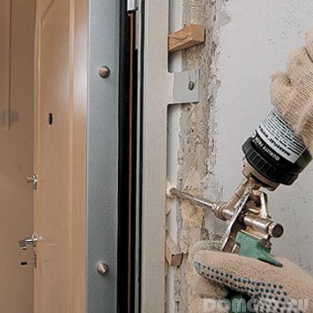 Nous enduisons les pentes de la porte d'entrée et en même temps, n'oublions pas que les fentes et les cavités ne doivent pas rester. En effet, entre le mur et la structure insérée, il existe des espaces de différentes tailles. Dans les maisons plus anciennes, elles dépassent 5 cm Dans ce cas, les pentes avant enduit sont isolées.