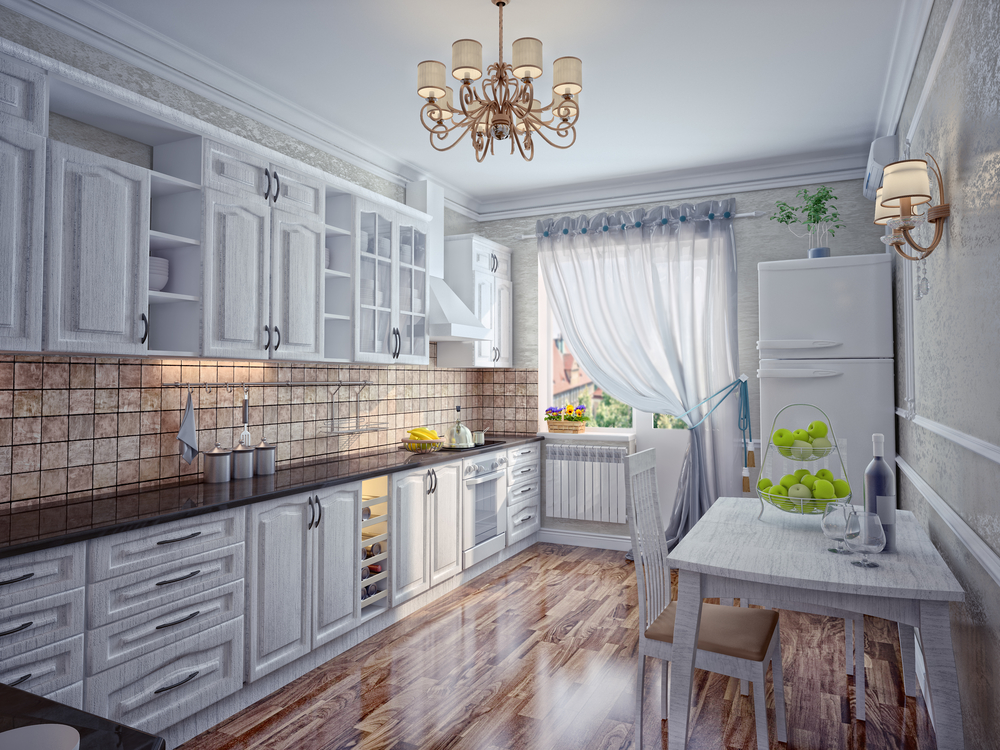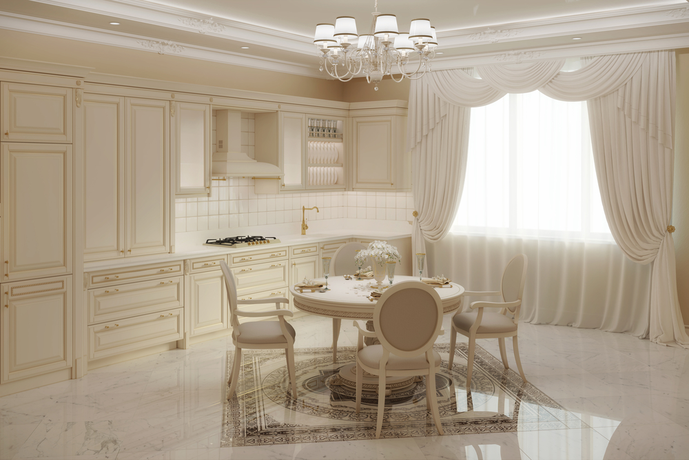 Les murs de la cuisine doivent être fonctionnels, résistants à la pollution. La facilité de nettoyage est un facteur fondamental dans le choix d'un revêtement décoratif pour les murs de la cuisine. Par conséquent, le moulage en stuc dans les intérieurs de cuisine est irrationnel et peu populaire. Mais les décorations du plafond - prises ou corniches - donneront à l'intérieur un aspect fini, comme le montre la photo des moulures en stuc dans la cuisine. Si les plafonds sont si hauts que le stuc est protégé de manière fiable contre les sources d'incendie, des éléments décoratifs en polyuréthane peuvent également être utilisés. La température baisse caractéristique de la cuisine, le polyuréthane n'a pas peur.