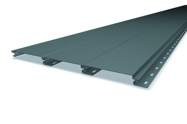 Le revêtement est un long panneau rectangulaire avec joints de verrouillage. Ce type de matériau est très diversifié: en plus des panneaux en aluminium, il existe des parements en vinyle, en bois et en fibrociment.