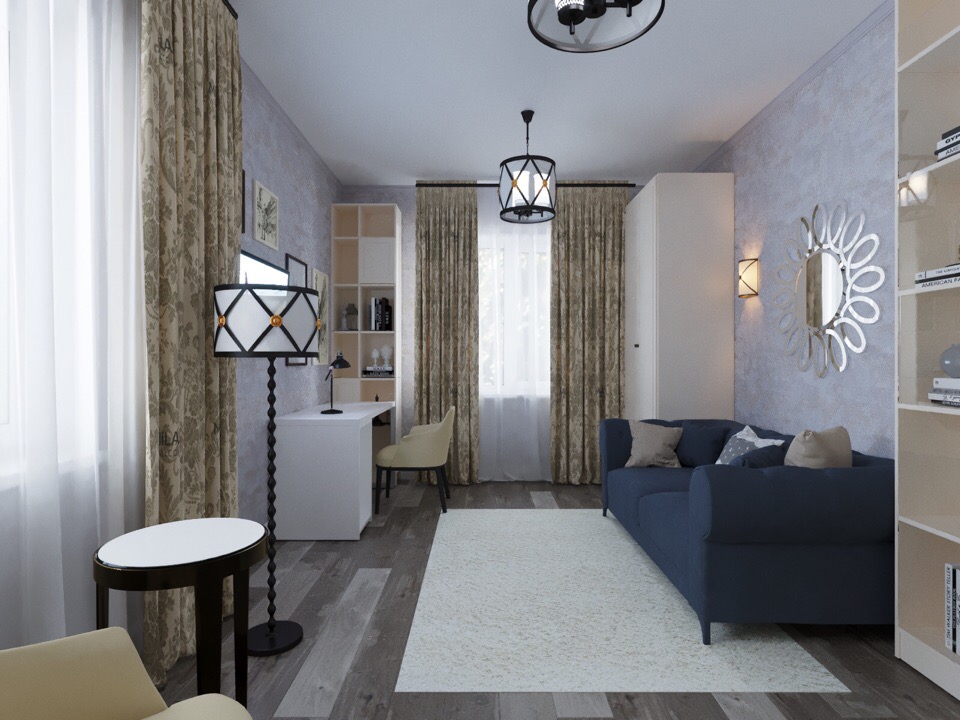 Le désir d'éclectisme prévaut, l'individualisation du client passe avant tout. Pour les pièces de plus de 60 m2, une excellente solution moderne est le style néoclassique. Vous pouvez concevoir tout l'espace dans ce style, ou vous pouvez utiliser les éléments de ce style partiellement - dans la décoration, l'éclairage et les éléments décoratifs.