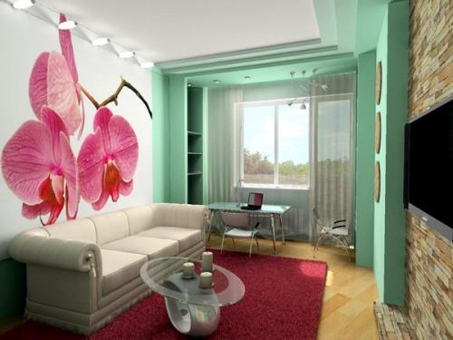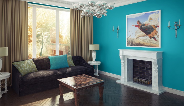 Si la pièce est située sur le côté sud ensoleillé, les tons froids apparaîtront. Il s'agit d'un papier peint vert dans le salon, ou bleu. Ces couleurs seront le thème.