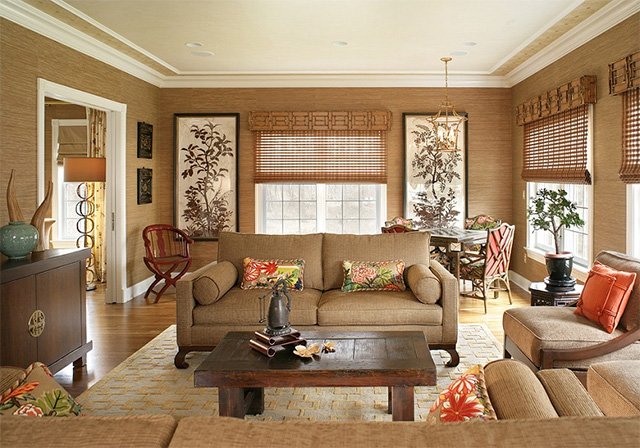 - Pour les amoureux de l'Orient, le style japonais convient tout à fait. Un papier peint en bambou souligne tout l'intérieur. Après tout, ils semblent être spécialement conçus pour cela. Ce matériau est assez bon à combiner non seulement avec d'autres papiers peints, mais même avec des matériaux. Après tout, dans ce cas, vous pouvez faire des chefs-d'œuvre naturels.