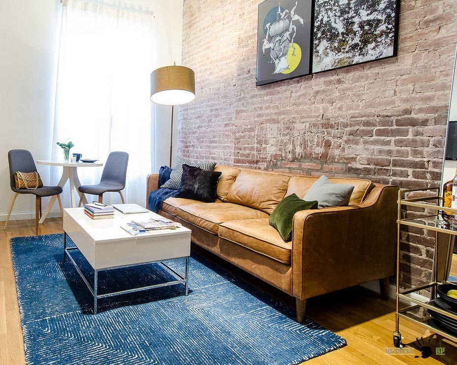 - Style loft aider à souligner l'ancien temps dans la pièce. Idéal pour les romantiques. Soulignez parfaitement cette direction n'est pas le mur plâtré. Il est également tout à fait possible de faire une imitation d'un mur nu à l'aide de divers panneaux.