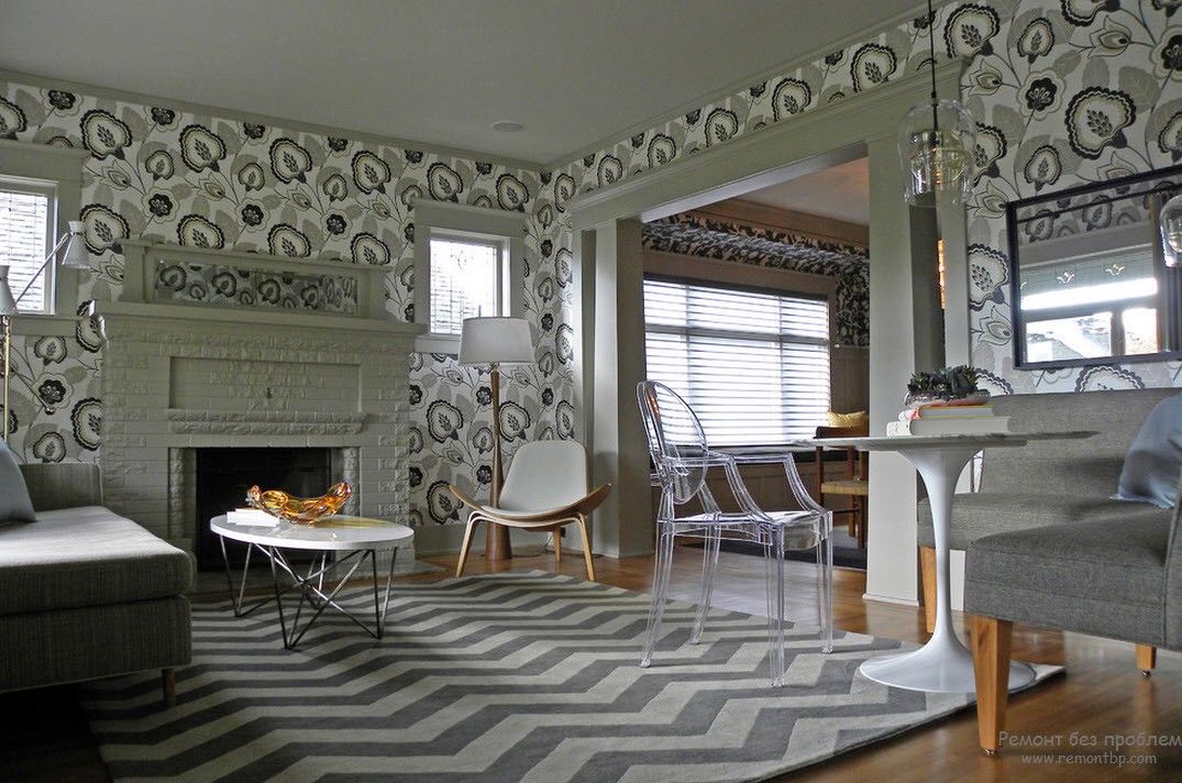 Intérieur du salon et les papiers peints sont complètement interconnectés. Ici, il faut choisir d'abord non seulement par la couleur ou le motif, tout d'abord, il faut déterminer le type de ce matériau.