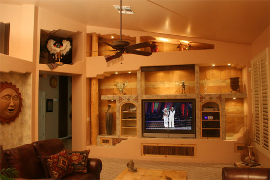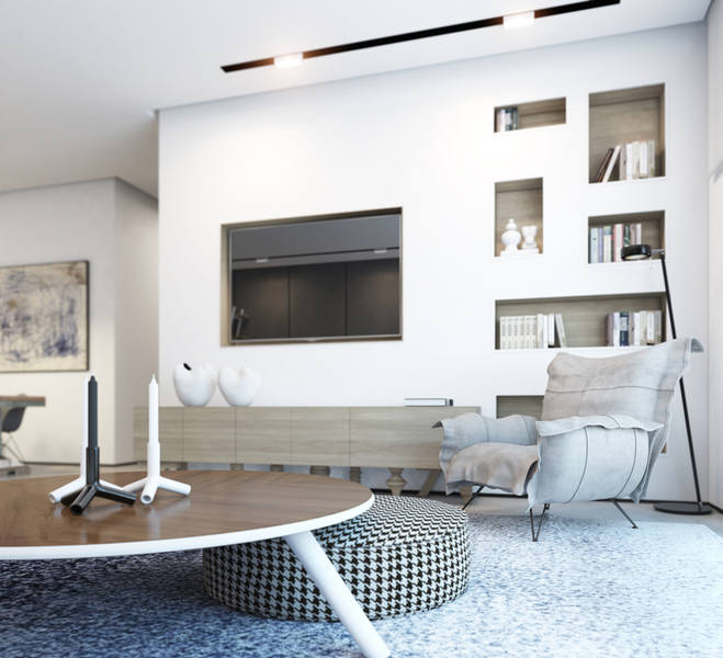 Si vous décidez d'utiliser une niche pour y placer un téléviseur, il est important de considérer que la conception de la niche ne doit pas chevaucher le plan de l'écran - elle doit être visible de n'importe où dans la pièce.