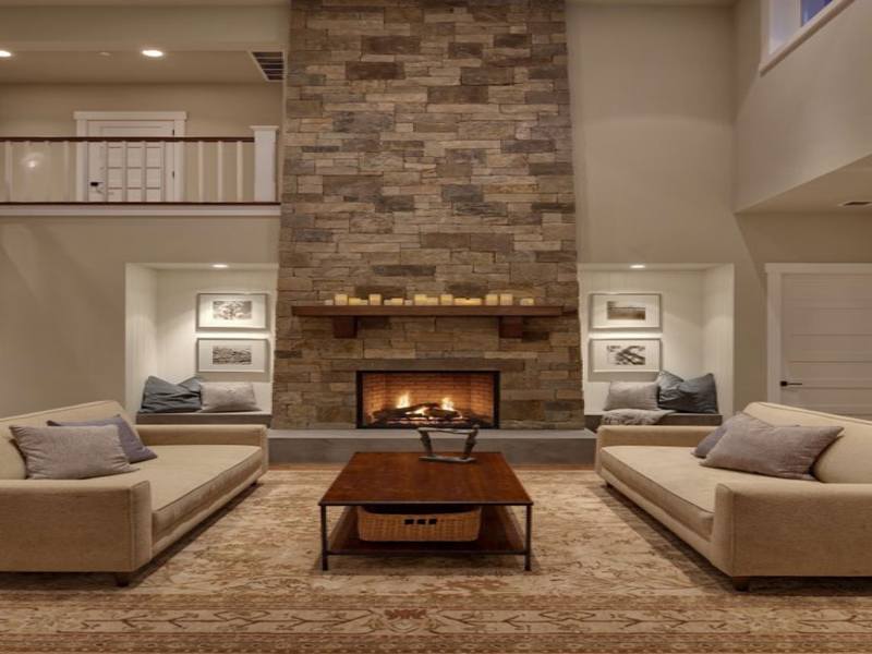 Pierre naturelle dans la décoration des colonnes et des niches à l'intérieur du salon
