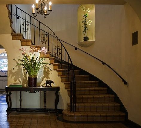 - Les niches seront appropriées sur le mur libre de l'escalier dans la maison de campagne, ce qui élargira visuellement l'espace réservé à l'escalier;