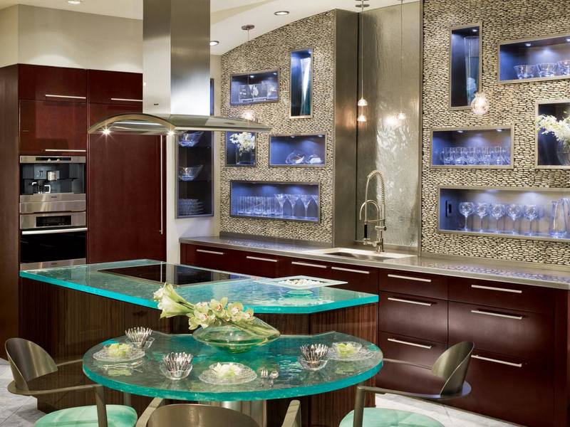 Pour la cuisine et la salle de bain, vous pouvez utiliser une mosaïque lumineuse comme surface intérieure de la niche.