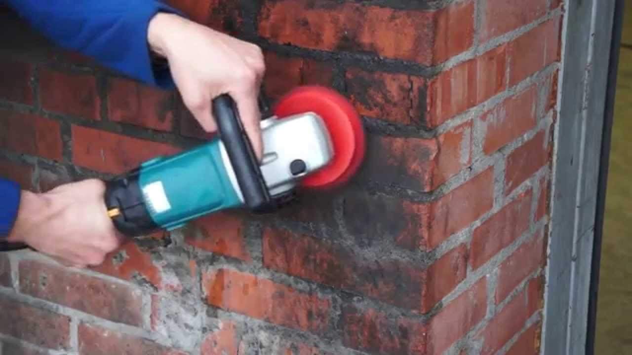 - Meuleuse d'angle ou meuleuse la couche extérieure du mur de briques est supprimée, comme sur la photo.