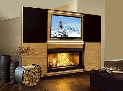 Quelques exemples de combinaisons sur le même mur de la cheminée et du téléviseur: