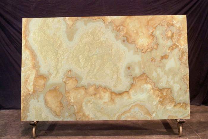 - Jetez un œil à l'image ci-dessus et vous verrez l'intérieur du revêtement salle de bains, et une assez grande zone où l'onyx est décoré d'un mur entier. Ces types de pierres ont une structure dense et n'ont pas peur de l'humidité.