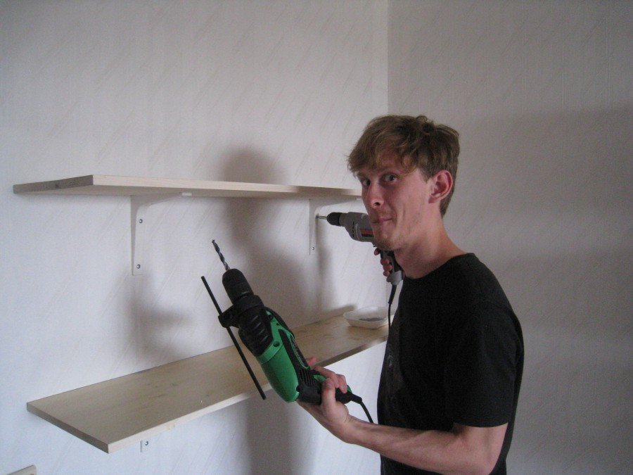 Après cela, vous pouvez mettre de côté l'étagère et joindre une autre sélection. N'oubliez pas de vérifier sa stabilité. Il ne reste plus qu'à accrocher l'étagère que vous avez faite au mur.