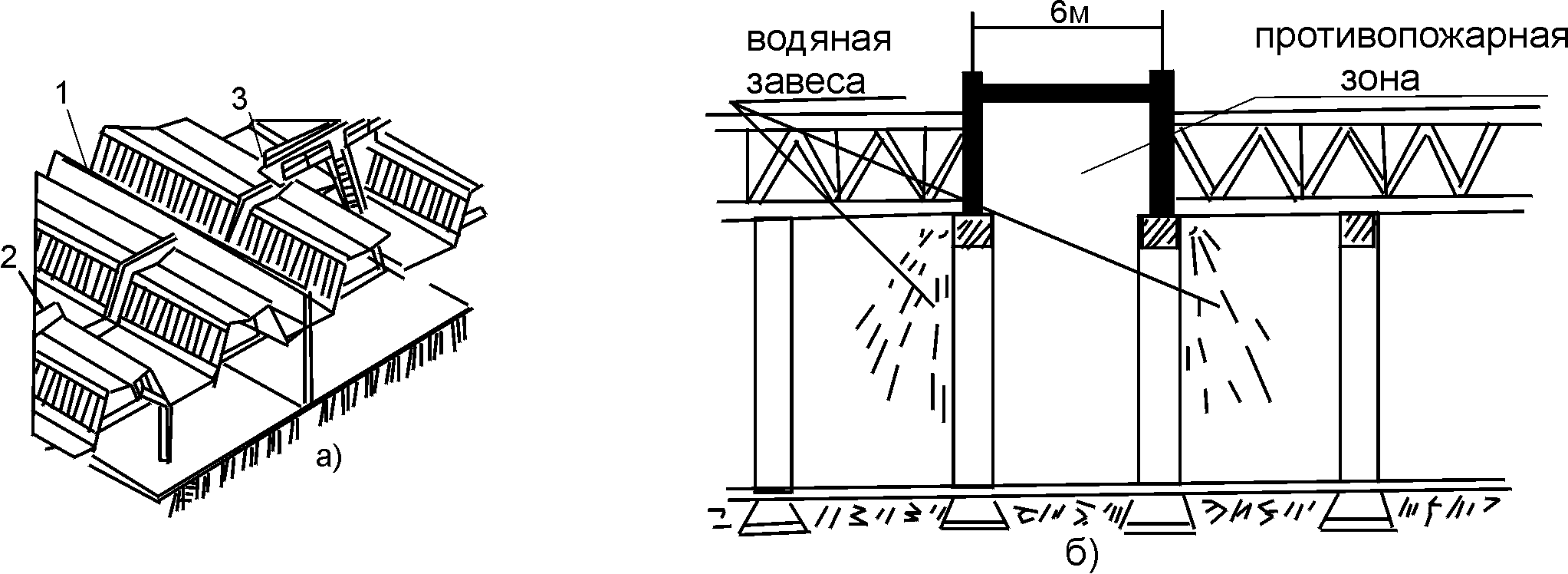- Mur coupe-feu entre les compartiments sur le toit, défenses éléments structurels combustibles.