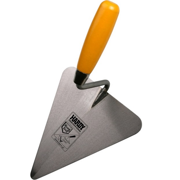 | Il existe de nombreux types de truelle, mais une telle version triangulaire est idéale pour le travail d'un maçon. Ce formulaire vous permet de sélectionner une solution dans les coins, pour laquelle le nez de l'outil est arrondi en douceur. Sa poignée a un talon plat, parfois même métallique, de sorte qu'il est pratique de taper sur une brique. Le tissu de la truelle doit être en acier inoxydable et ses bords sont pointus, ce qui permet d'accrocher la brique. En moyenne, la longueur de l'omoplate est de 16 cm et la largeur de 11 cm. | |