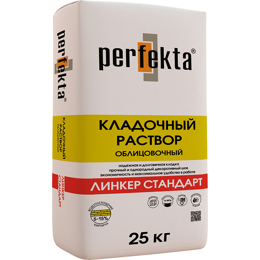 Ce sont des mélanges secs universels M150, qui conviennent non seulement pour la pose de briques, mais aussi pour enduire les murscoulage des planchers. Des compositions d'un grade supérieur sont utilisées pour couler les fondations, les armopoyas, les linteaux monolithiques. Un tel emballage, comme sur la photo ci-dessous, coûte environ 160 roubles. Des mortiers colorés sont généralement utilisés pour la pose de briques décoratives.