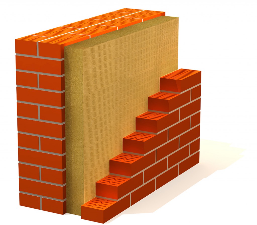 - Mur en une seule brique avec revêtement et isolation en laine minérale