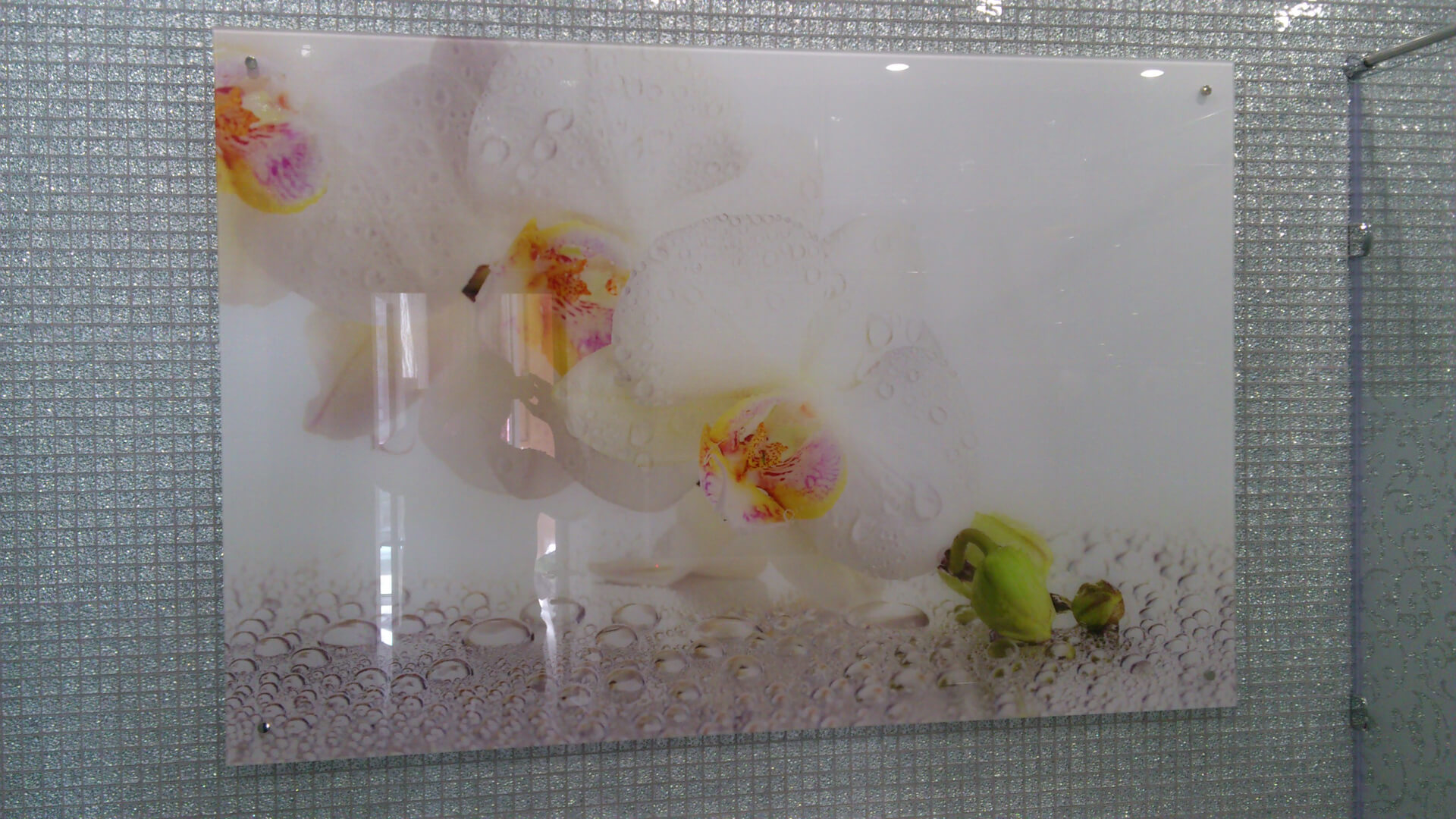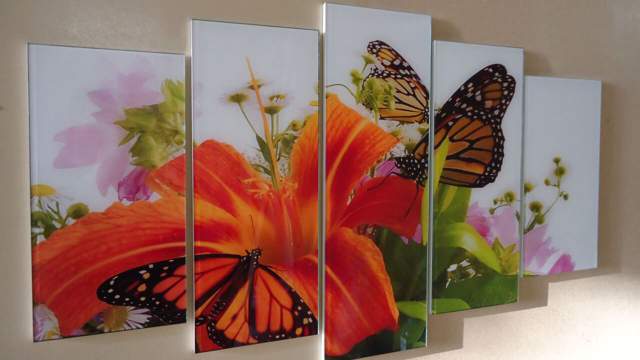 C'est tout, notre panneau mural photo en verre est prêt. Apparemment, il n'y a rien de compliqué ici, bien qu'avant de vous mettre au travail, il vaut mieux s'entraîner un peu en petits morceaux.