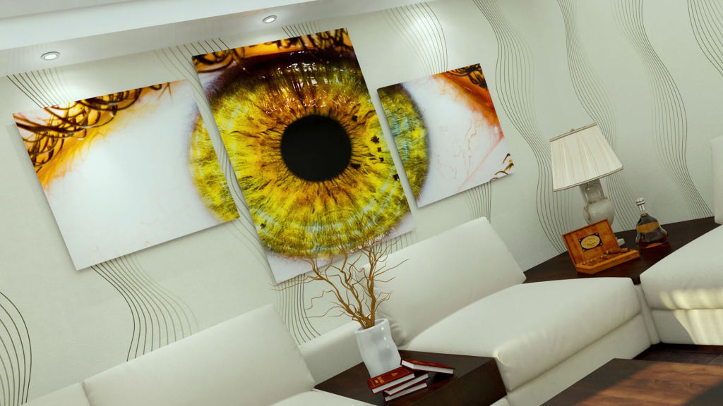 Une autre solution intéressante pour la créativité domestique est les peintures modulaires triplex. La technologie est la même, seule l'image est appliquée non pas sur un verre, mais sur plusieurs segments de tailles différentes.