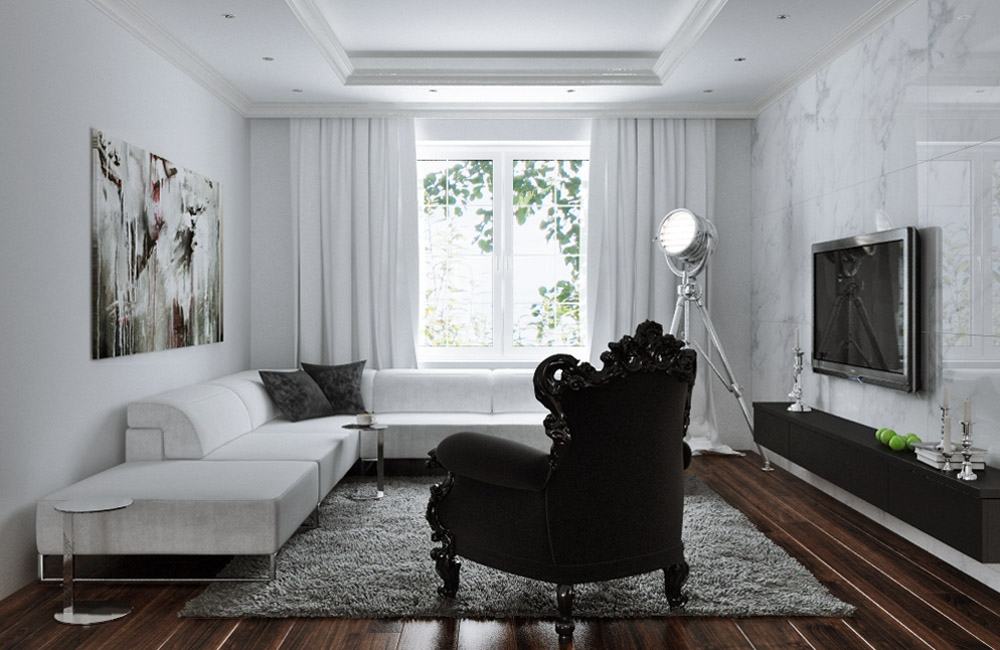 Conseil! Utilisez autant de sources de lumière que possible, et si vous avez des plafonds bas, jetez le lustre central. La lumière doit circuler de chaque côté et aucun coin sombre ne doit rester dans toute la pièce. Cette technique met non seulement l'accent sur le style, mais rend également l'intérieur plus chaleureux, malgré le grand nombre de couleurs froides.