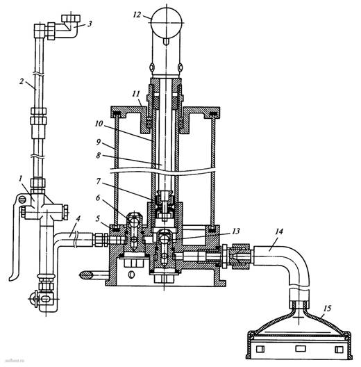 - Sur le manchon 14, à travers le filtre 15, qui est fixé à la base 5, la composition est absorbée.