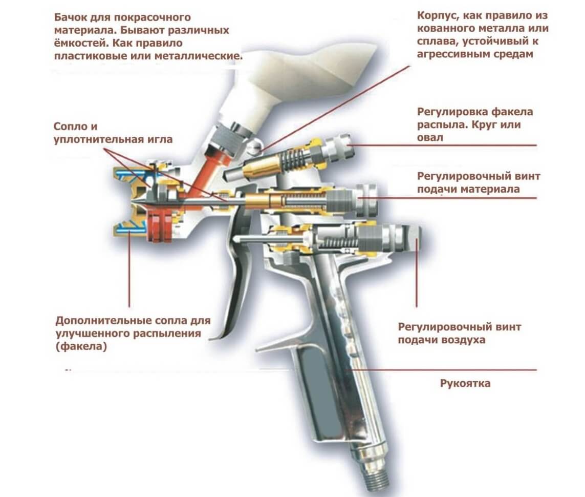 C'est fondamentalement la mauvaise position, car pas moins, mais souvent encore plus, dépend du pistolet de pulvérisation.De nombreux outils sont d'une qualité si médiocre qu'ils peuvent gâcher tout le travail effectué, par exemple, si pendant le processus d'application, la peinture commence soudainement à voler dans les mottes ou à pulvériser de manière inégale, entraînant des lacunes ou vice versa.