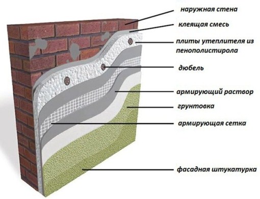Attention: La coloration de la mousse de polystyrène se fait non seulement pour déterminer le design, mais ce sera également une couche protectrice contre la pénétration d'humidité. Et c'est une économie de chaleur.