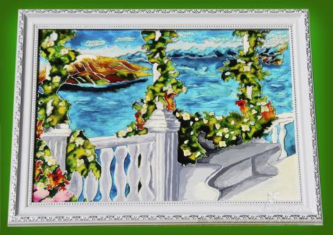 - Peinture murale de style Tiffany - le contour est appliqué à l'aide d'un feutre, puis les peintures sont versées avec soin, sans sortir du contour. Le dessin est en trois dimensions.
