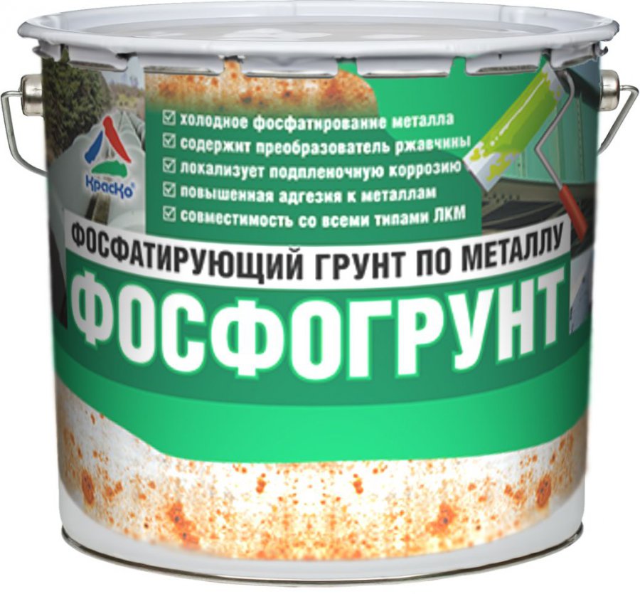- Phosphatation. Il contient de l'acide phosphorique et un diluant. Un tel apprêt est utilisé pour les surfaces en acier, parfois pour l'aluminium. Primaire universel compatible avec tous types de peintures. Contient un convertisseur de rouille, a une bonne adhérence. Ce revêtement a une assez bonne résistance aux températures élevées: jusqu'à 200 degrés. Jusqu'à 0,15 kg d'apprêt est consommé par 1 m2.