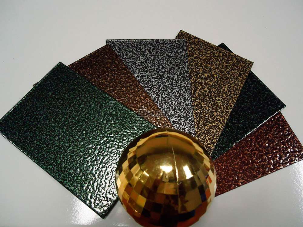 La coloration par cette technologie nécessite un équipement spécial: un pistolet de pulvérisation pneumatique, une chambre de pulvérisation et une chambre de four. La peinture en poudre a une large palette de couleurs et de textures (imitation pierre, différents types de métaux, nacre, caméléon, etc.)